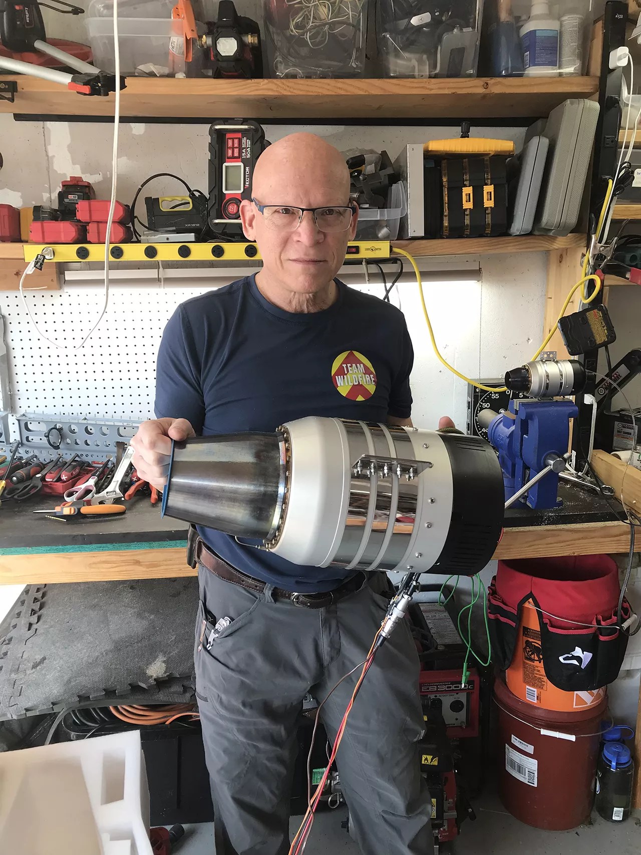 After creating the specs for his proof of concept for CloudBurst, Wolf began looking for larger used jet engines, which can be purchased for around $30,000 from a jet engine graveyard in Arizona. “Just because an old engine is no longer allowed to take to the skies doesn’t mean it can’t put out fires,” he says.