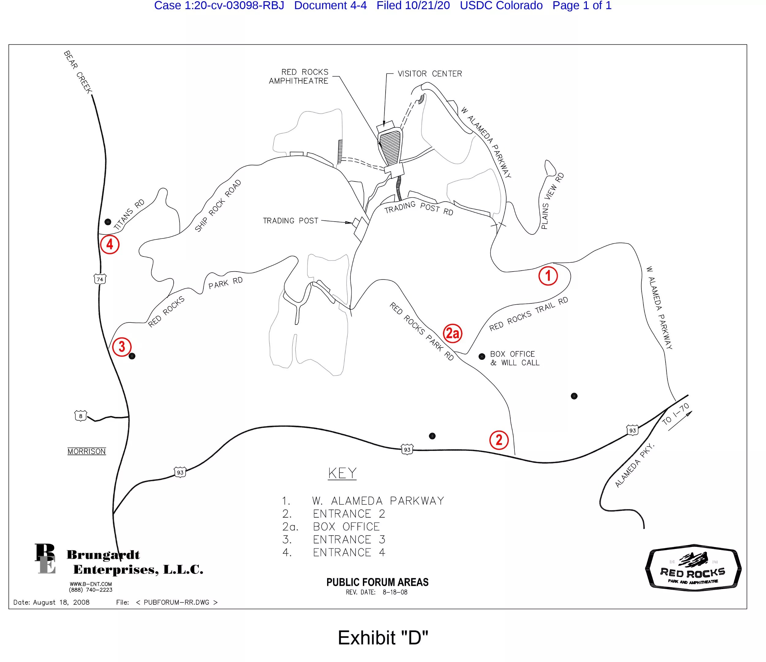 “In applying this policy to Red Rocks park, Denver goes far beyond the immediate vicinity of the amphitheatre and only allows expressive activities in 5 discrete spots among the 868 acres of the park,” the complaint states. “None of the 5 spots Denver designated as public forums in Red Rocks park encounter much pedestrian traffic.”