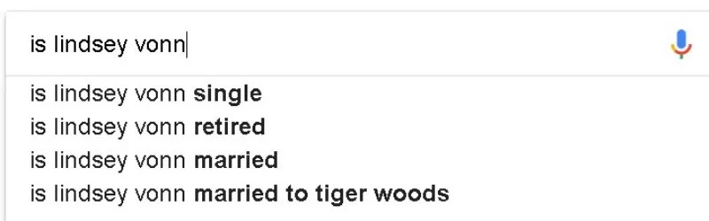 Google wants to know…if she’s married to Tiger Woods (whom she dated until splitting up with him in 2015).