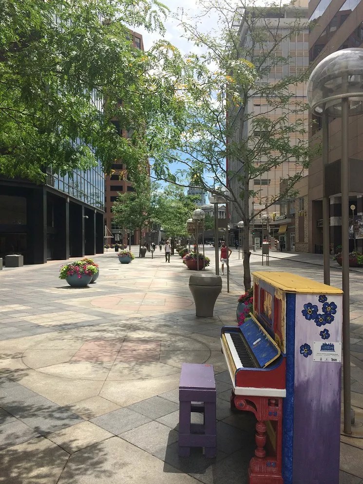 There are some things that the 16th Street Mall does right, like the public pianos, just waiting to be played. It’s beautiful that you can play a quick game of checkers or chess at some of the tables. It’s good that there are chairs and assorted seats so that people can just sit and relax and people-watch and enjoy the views of the mall itself. We want more of that, more of the simple charms.