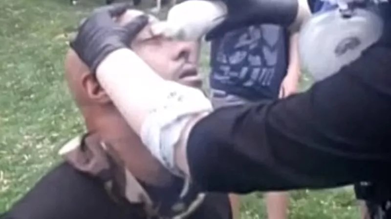 A screen capture from citizen video of Terrance Roberts having his eyes flushed after the July 2020 protest.