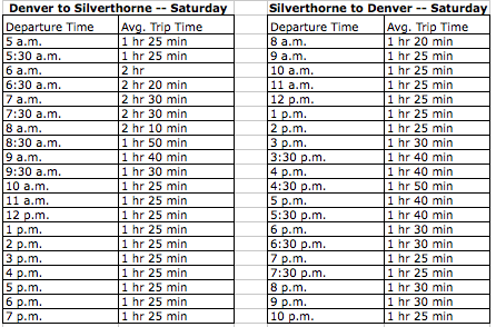 To avoid ski traffic on Saturdays and Sundays, it’s best to leave Denver before 6:30 a.m. and head back from the slopes before 2 or after 6 p.m.