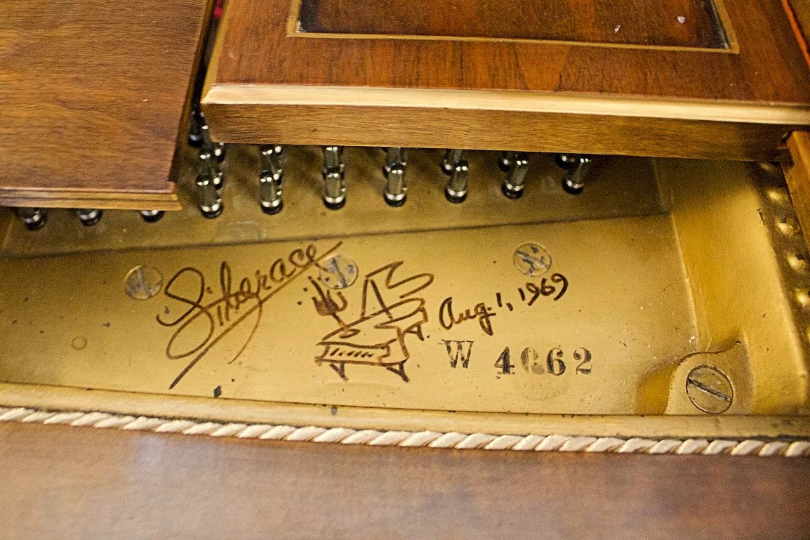 A 1914 Steinway grand piano sits in the mansion’s drawing room; it was signed by Liberace after he played the instrument during a show at Red Rocks Amphitheatre in 1969. The signature of famous Irish musician Phil Coulter can also be found inside the piano.