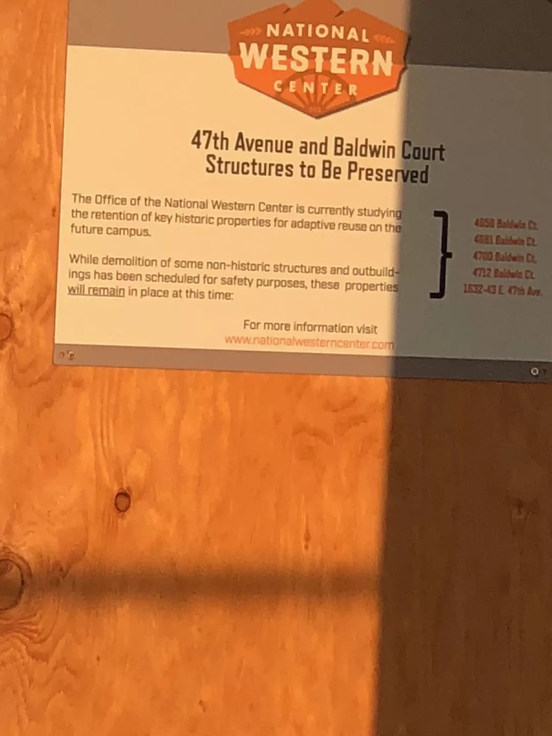 David thought it was all over. But then, last week, his brother spotted a placard nailed to their former home. The sign stated: “The Office of the National Western Center is currently studying the retention of key historic properties for adaptive reuse on the future campus.” The placard included the addresses of five properties, including the Torres family’s old house.