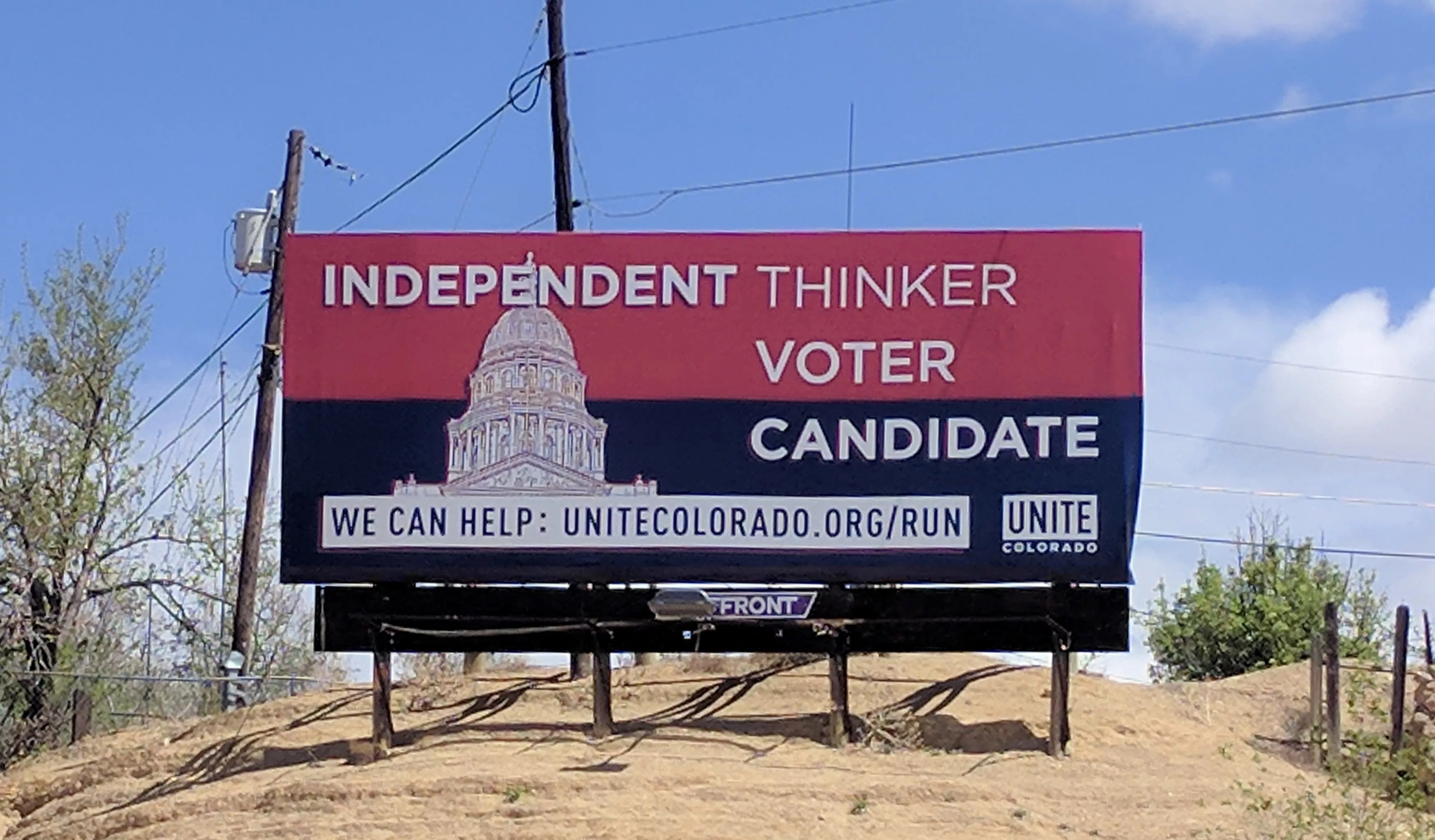 A Unite Colorado billboard in Pueblo seeks political candidates for a new, independent political movement.