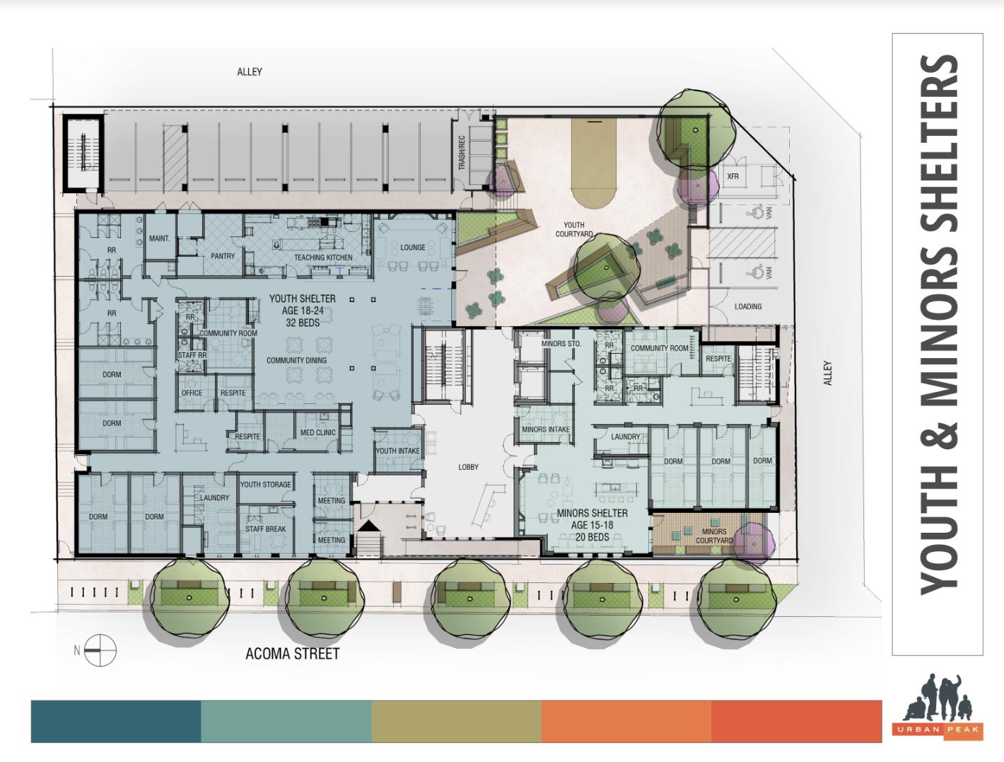 Urban Peak’s layouts and blueprints for the Mothership indicate the building is made up of dorms, with office and shelter space set aside for gatherings and meetings. The Mothership is described on Urban Peak’s website as a “medical clinic” and “shelter” that will provide “life skills development,” mental health services, case management, supportive services and shelter beds for more than 130 teens and young adults.
