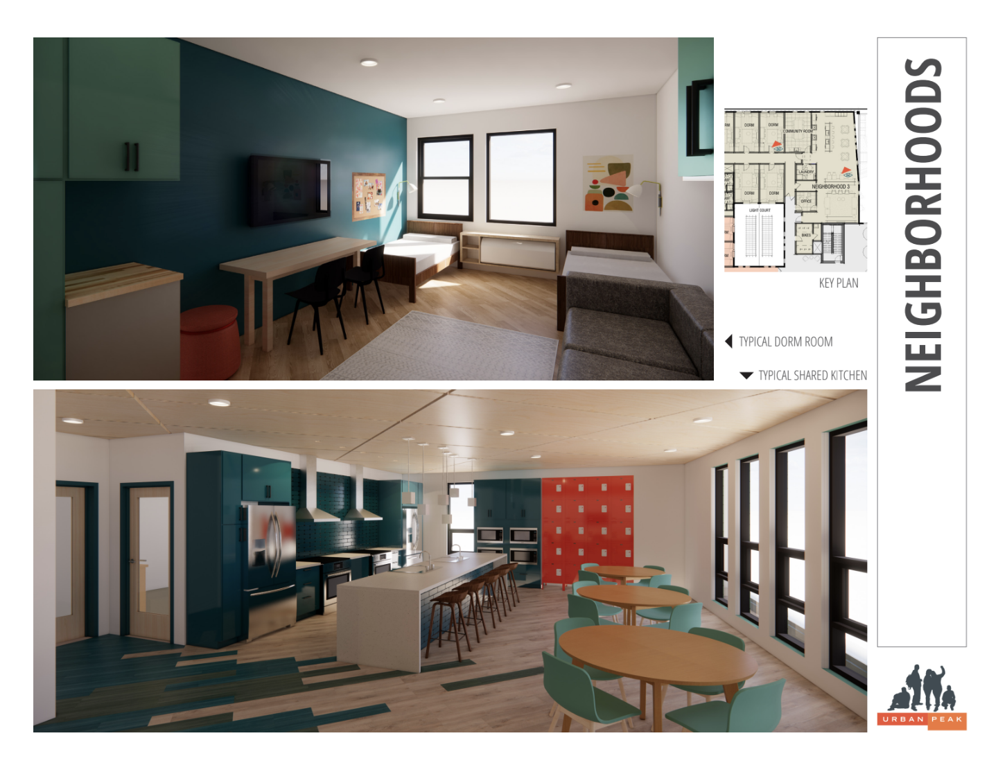 Urban Peak’s Mothership is going to have shared “neighborhood” spaces with dorms and open kitchens.