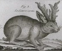 An illustration of a rabbit with “horns” featured in the 1789 French wildlife encyclopedia Tableau Encyclopedique et Methodique.