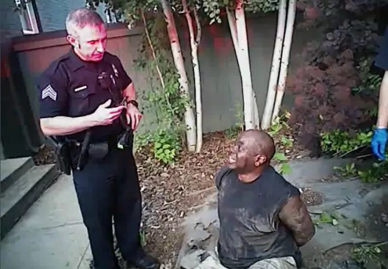 In the clip, Holland continues, “You can see his eyes looking right in the camera, and he looks friendly. His hands are down. He’s obviously unarmed and he looks like he’s giving up. He was under the bushes, and he has to get out, but he’s doing what he’s supposed to do. Then he gets tased, which is mean-spirited and unjustified, and the officer starts saying, ‘Stop resisting,’ which he’s not doing at all. At that point, his head is down on the ground and he’s semi-paralyzed. His arms are trapped underneath his body. They had to pull them out in order to handcuff him. His face is in the dirt, he isn’t jumping or flailing, his feet aren’t moving. He’s hurting and says he’s having trouble breathing, and the officer tells him that he can’t be short of breath because he’s talking. But just because you’re short of breath doesn’t mean you can’t talk.”