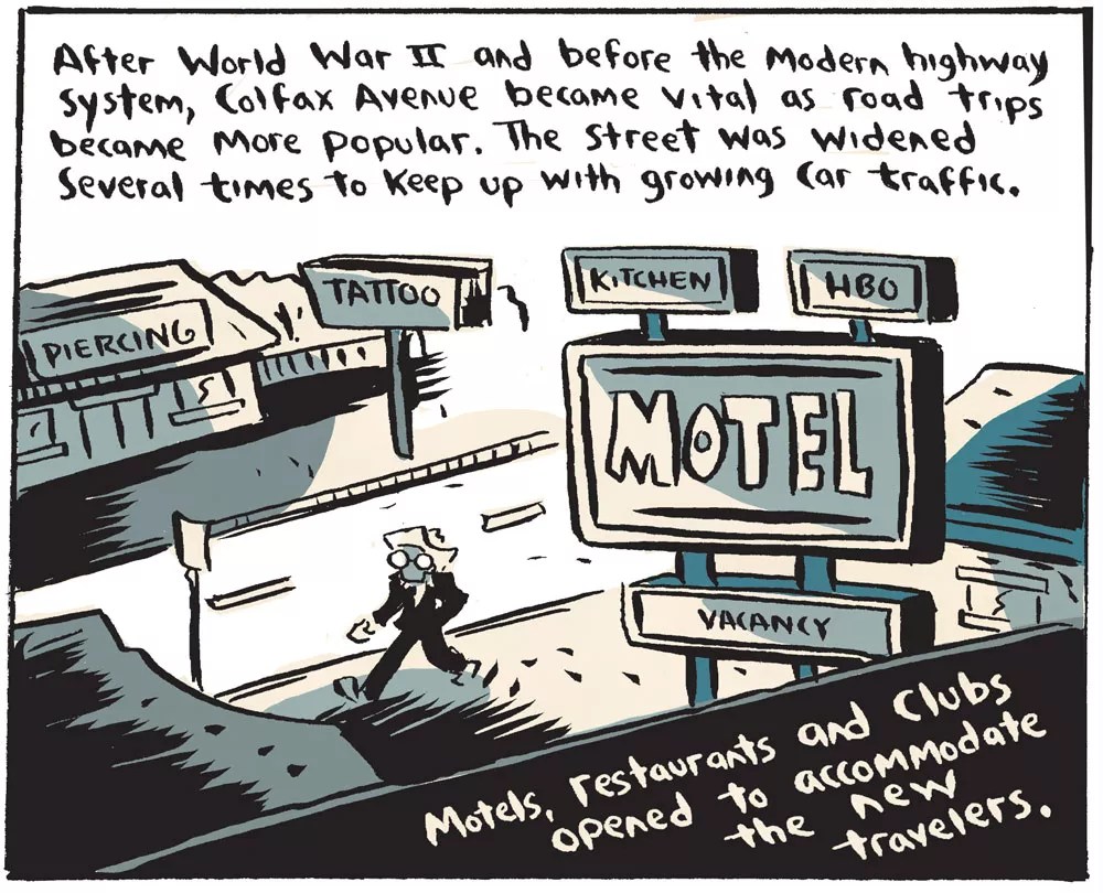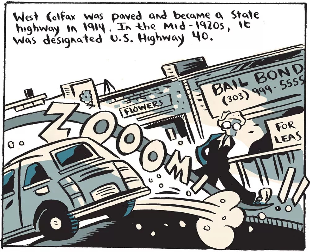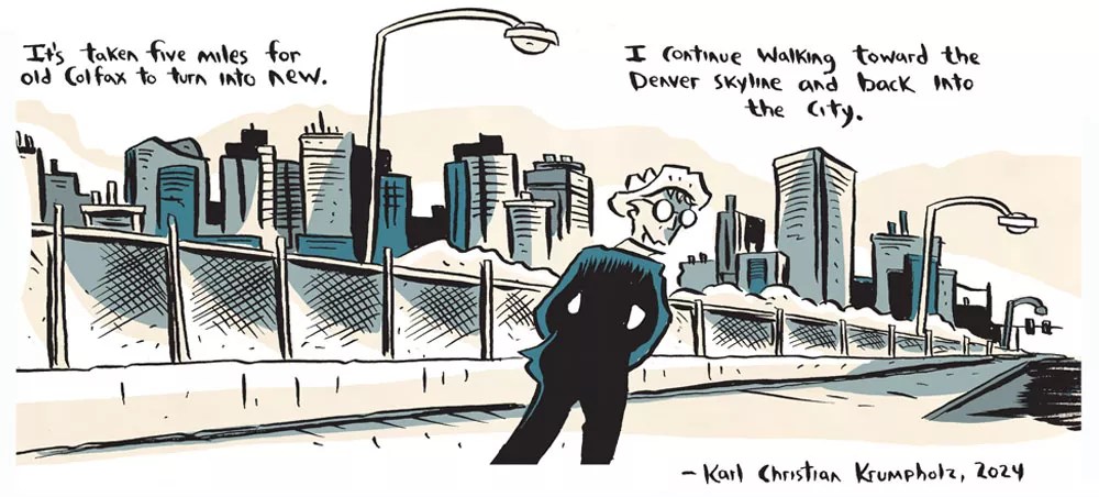 Cartoonist Karl Christian Krumpholz has been exploring Denver for years, diving into history and then sharing discoveries that cover everything from the 16th Street Mall to Union Station. This time, he’s taking us on a walk along West Colfax Avenue, finishing off the trek that started with East Colfax.