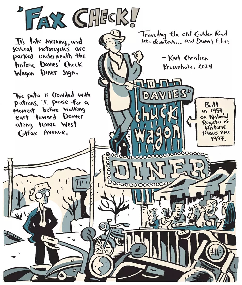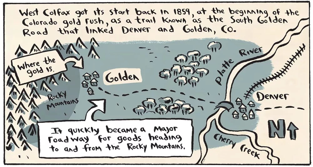 Cartoonist Karl Christian Krumpholz has been exploring Denver for years, diving into history and then sharing discoveries that cover everything from the 16th Street Mall to Union Station. This time, he’s taking us on a walk along West Colfax Avenue, finishing off the trek that started with East Colfax.