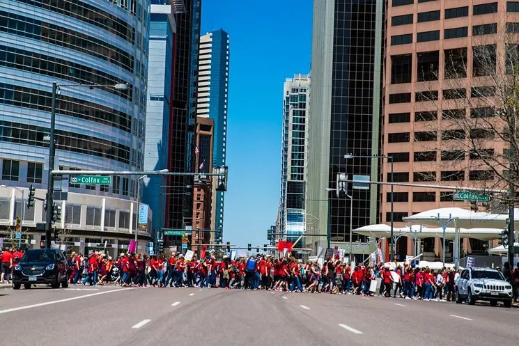 Protesters take to the street. Heather Fairchild “At PERA, Retirees Face Cuts While Wall Street Gets Millions“ The narrow disclosure language in the pension bill – which still keeps fee details hidden from the general public – was added following our investigation showing that in recent years, PERA has paid more than $1 billion in such fees even as the pension fund has delivered returns that significantly trail a low-fee stock index fund. The bill slashes cost-of-living increases and requires higher pension contributions from educators, firefighters, cops and other public-sector workers covered by PERA. The changes – opposed by the state’s largest teachers’ union and approved after recent teacher protests at the Colorado State Capitol – were designed to shore up the finances of PERA, which faces a $32 billion gap between what it has promised retirees and what it has in the bank. What do you think of PERA reform? Comment on this post or email editorial@westword.com.
