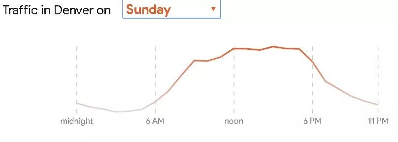 The site also provides Denver traffic graphics for each day, which show the rise and fall of roadway-clogging volume.