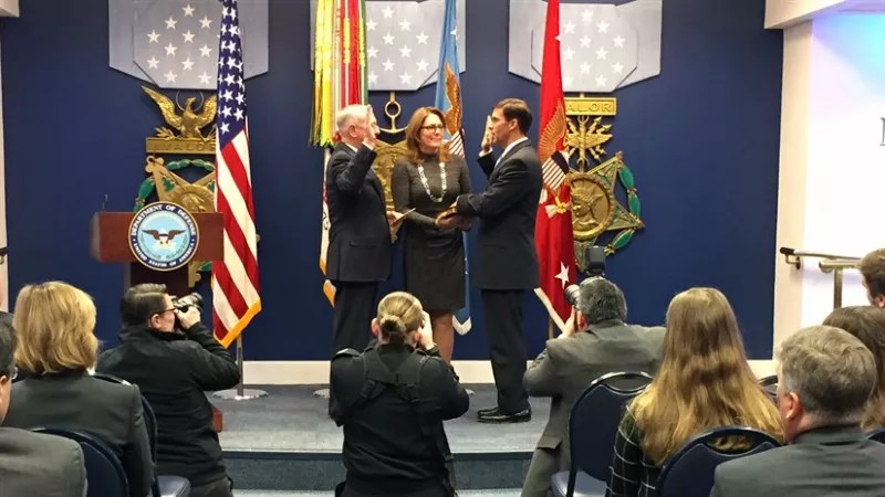 Mark Esper being sworn in as Army Secretary by Defense Secretary James Mattis in January.
