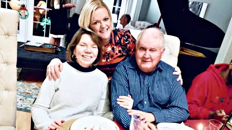 Attorney Jessica Peck with Curt and Pat Jensen, Erik’s parents, at a celebratory dinner after the clemency announcement.