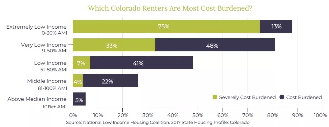 This graphic highlights those Coloradans most burdened by high rent costs.