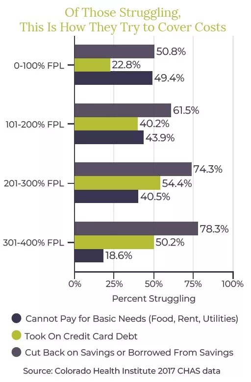 The graphic depicts the most common ways Coloradans attempt to cover their expenses at times of financial struggle.