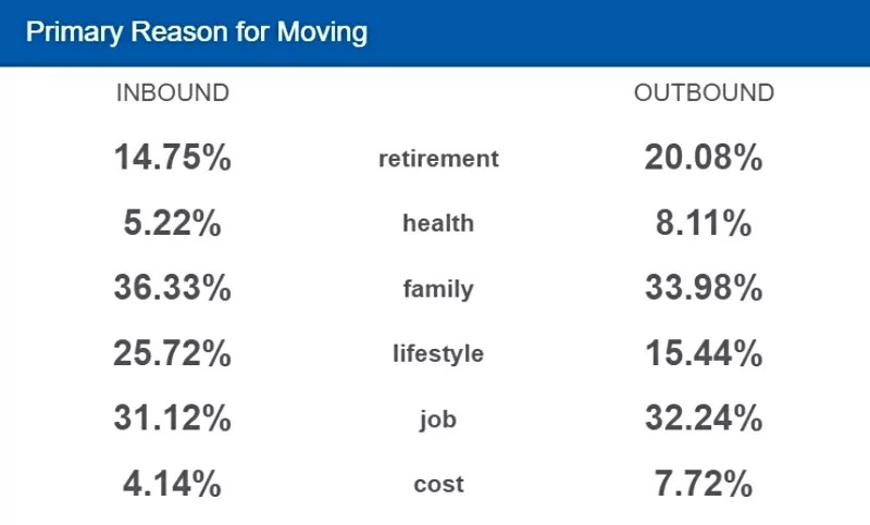 A slightly higher percentage of people in the 55-and-above demo left the state than came here — and according to the study, retirement elsewhere was more popular than planning for golden years in Colorado during 2021. Although most of those moving — whether coming or going — were motivated by family or jobs, there was more than a 10 percent disparity between those seeking a better lifestyle — long one of Colorado’s biggest draws. Only 4.14 percent of transplants chose the state because of cost, while 7.72 percent mentioned this factor as a motivation for splitting.