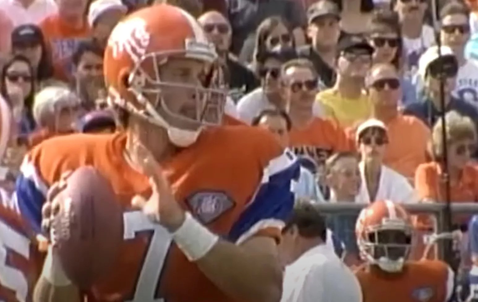 The NFL was commemorating its 75th anniversary in 1994, and teams throughout the league were invited to design some “throwback” uniforms to honor the occasion. Instead of going back to the mustard-and-brown design with the mousy brown helmet, the Broncos updated the squad’s 1962 look for their selected anniversary game, while keeping it a more modern shade of orange. The alteration didn’t do much to help the Broncos’ chances at winning, though, with the Raiders walloping Denver at home, 48-16. The team may have been taking the throwback spirit a little too seriously.