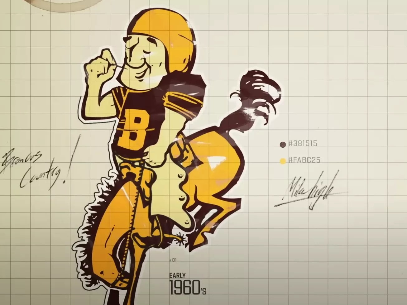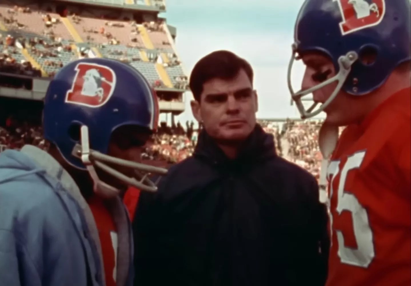 When Jack Faulkner was handed the reins in 1962, the Broncos’ colors and uniforms were the first thing he tackled. For a time, it’s said, the team considered a green color scheme, but word eventually came about that the newly formed New York Jets would carry that color, so Faulkner decided on orange with blue trim. The initial logo on the orange helmets was stenciled in blue, which turned out to be virtually impossible to make out on black-and-white TVs at the time. So the insignias on the helmets were changed to white for greater contrast. The starry-eyed horse who looked like he’d had one too many belts on Larimer Street? He lasted for five years before being put out to pasture.