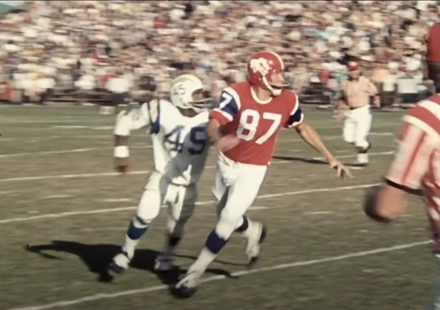 The Broncos’ first color scheme was something that was more reminiscent of a dirty diaper than fierce gridiron play. The jersey was mustard, the helmet a milky brown with a white stripe. The player’s number was in white on the right side. The whole thing was a terrible idea born from a lack of funding. The Broncos inherited the hideous threads after they were bought from a defunct bowl game out of Tucson, Arizona (where the colors might have actually made some sort of sense, even if they were terrible). The helmets were arguably the least offensive part — but that didn’t make them any good. The uniforms were so hated at the time and had become such a symbol of the Broncos’ early inability to win games that they were ceremonially torched by the team’s new coaching staff in 1962. Literally set on fire.