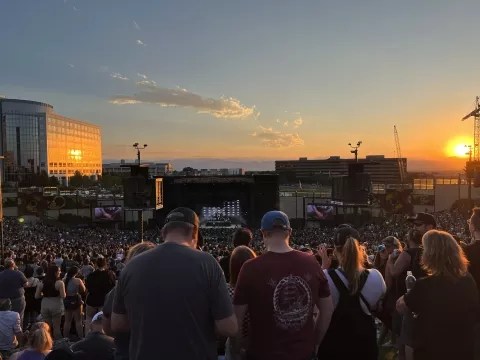 That was our chance, but we didn’t know it. The smart ones — or the lucky ones? — gave in to fate at that first cut-point, walked back to the streets of Greenwood Village and used a rideshare app to get the hell home. The rest of us thought eh, it’s only another twenty minutes. Seeing a show is already about waiting — to get in the gates, to get beers and snacks, to buy a concert T-shirt, to see the opener, to see the main event, and so on. So we were inured to the process by then. What was another few minutes? We’d be on the train soon, right?
