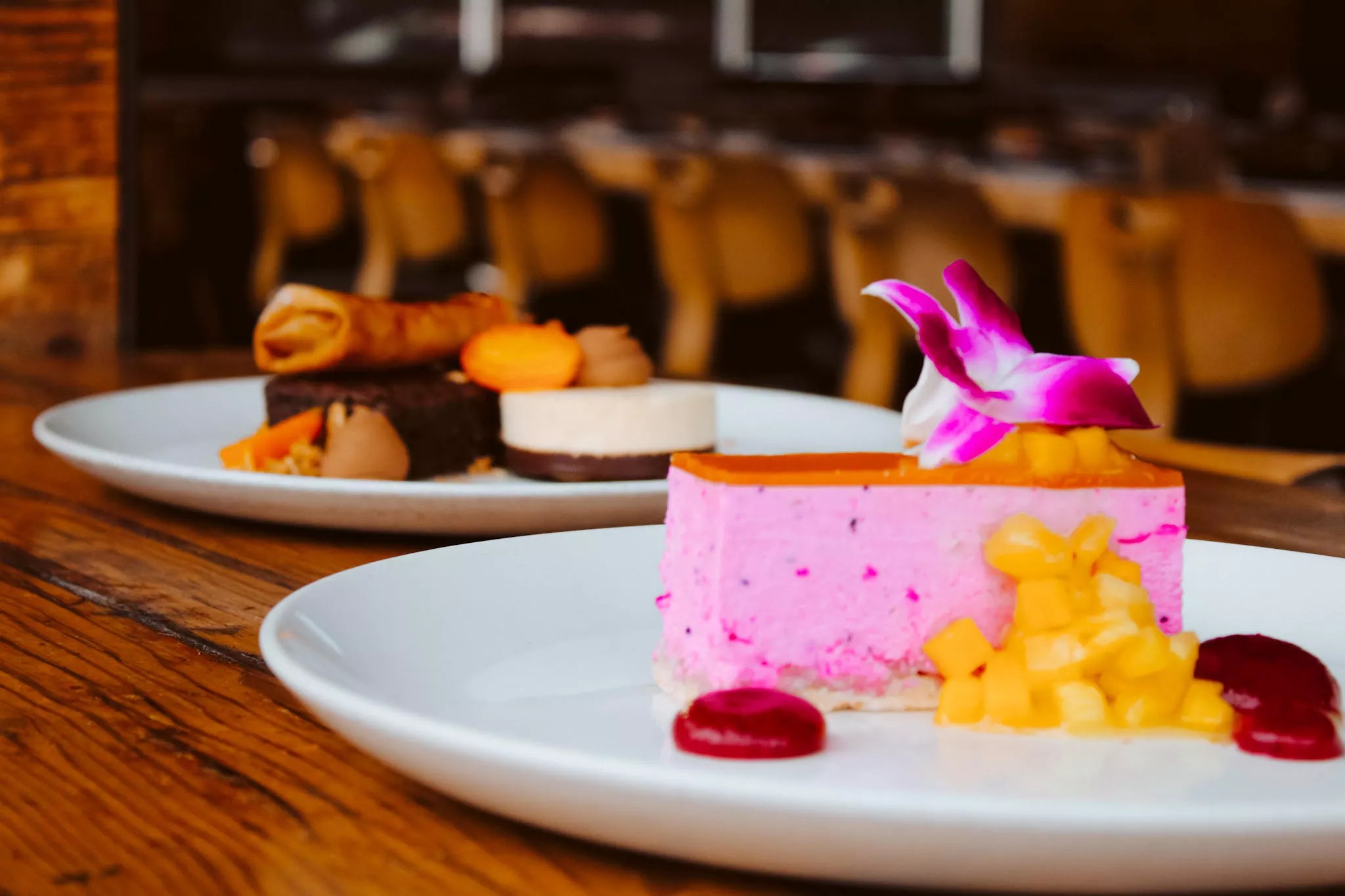 Vongsakoun advises diners to save room for dessert, because “chef Michael [Kurowski] has done an amazing job with it; it’s beautiful. It’s really clean and approachable.” Highlights include colorful dragonfruit cheesecake with mango-pineapple chutney and a mochi brownie served with miso banana semi-freddo, gianduja chocolate, turon (Filipino banana lumpia), sesame almond crunch and kumquat.