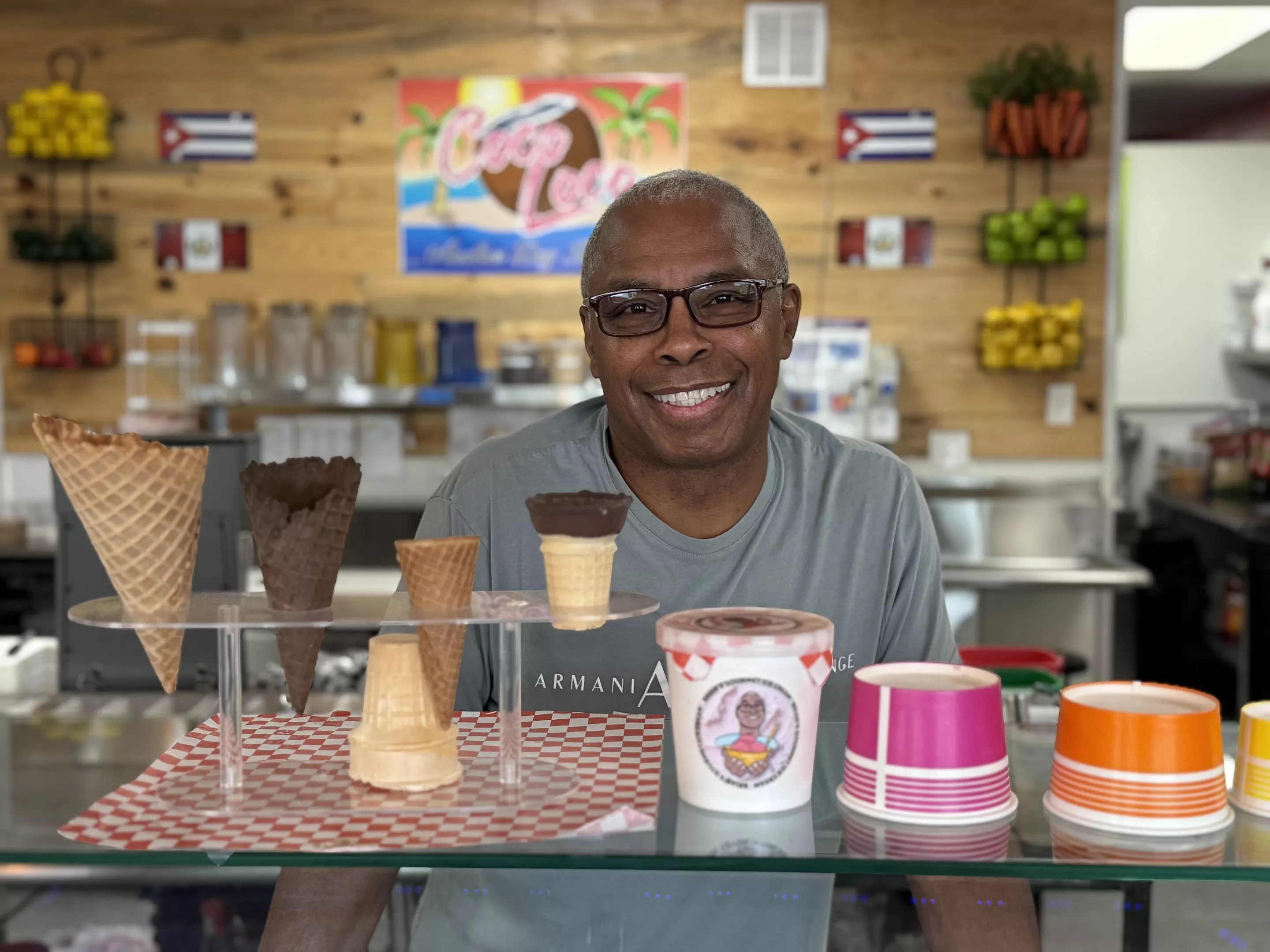 Brian’s Gourmet Ice Cream founder Brian Fashaw shares space with the Coco Loco smoothie shop. Yes, you can buy the boozy ice cream here too!