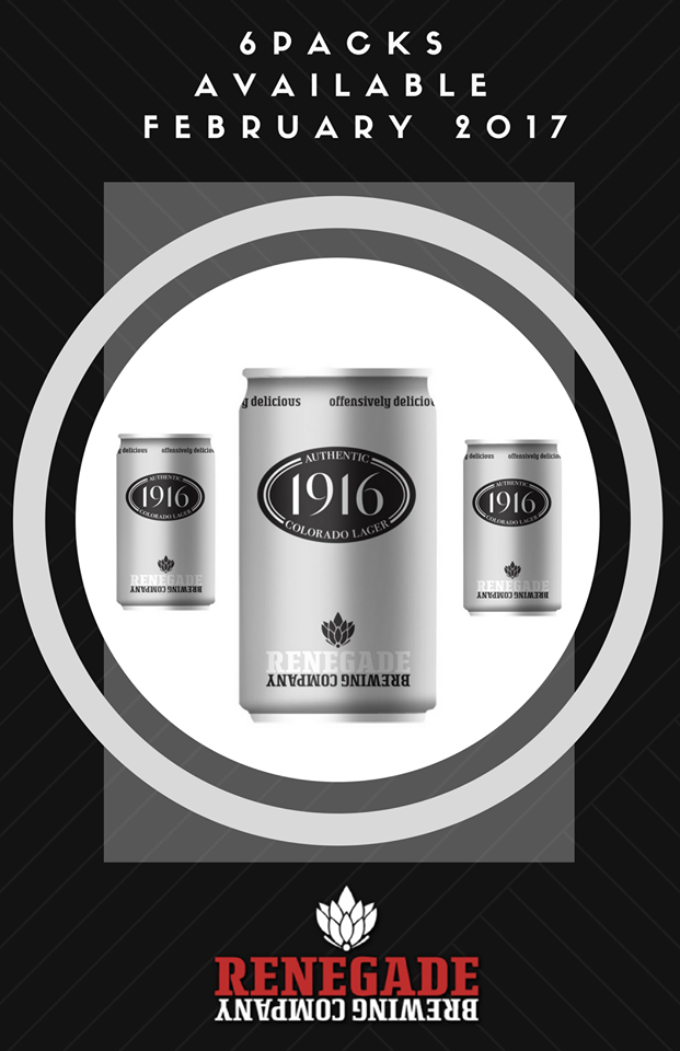 Help Renegade Brewing welcome its newest canned beer, 1916 Colorado Lager, today with a party and free beer. Yes, free beer. Everyone who comes to the taproom from 2 to 10 p.m. gets a free six-pack of 1916 Lager and a free twenty-ounce 1916 mug – both with the purchase of a full pour of 1916 Lager.