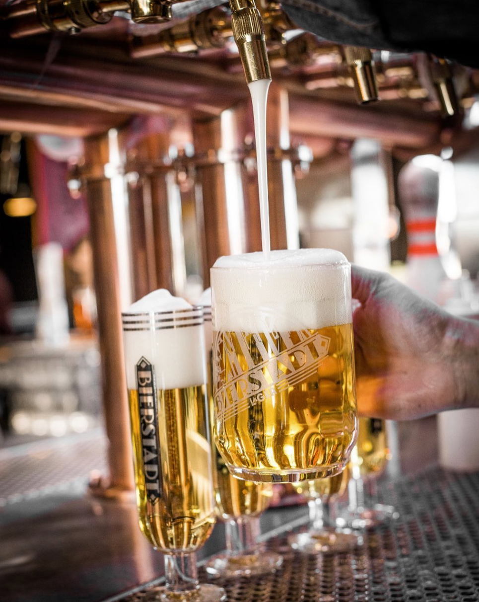 A fresh helles being poured, with a contingent of Slow Pour Pils creeping in the background.