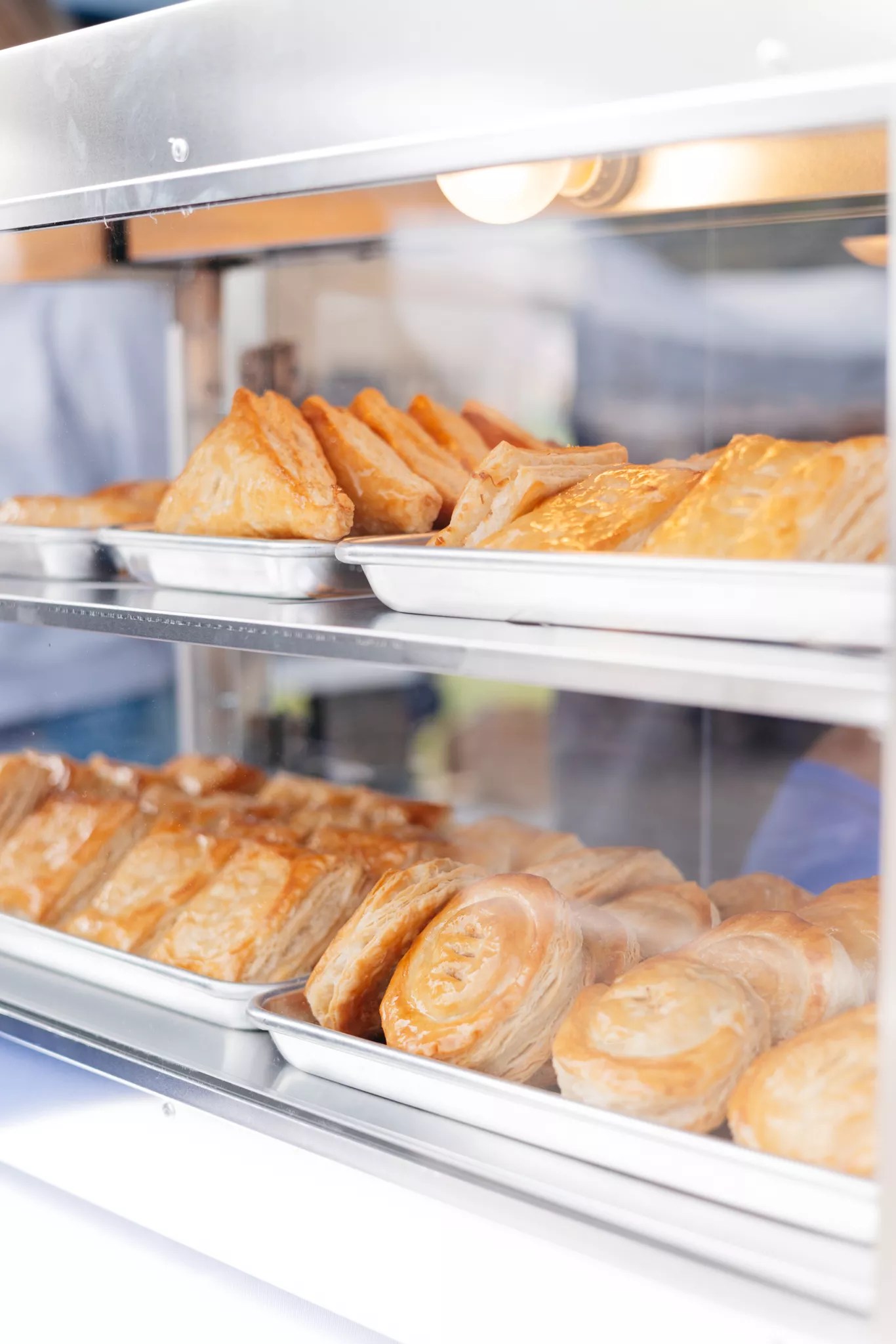 Since then, Café Tres has hit its stride as more people become familiar with it. “It’s been awesome. I think I’ve pretty much sold out every single weekend. I can’t physically make any more, at least until I get help, so at least there’s no food going to waste,” he says. He still works as a graphic design contractor Monday through Thursday, and goes to his commissary kitchen in the evenings to prepare and laminate pastry dough for each week’s market.