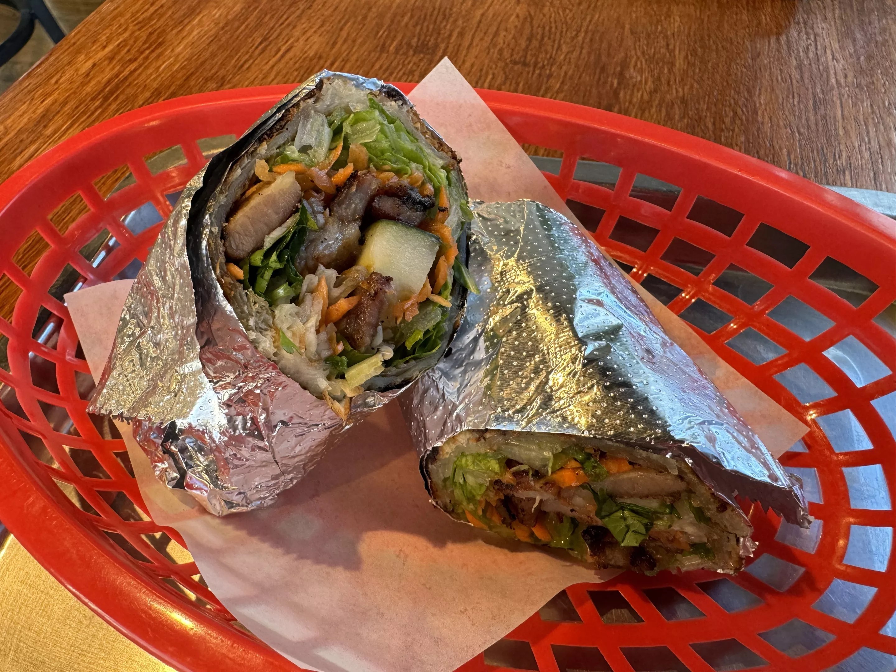 And it is a true family affair. Limpapath’s grandmother and aunt both came from Thailand to help her run the restaurant. Her cousin is the fourth and final employee and is the one who painted the dog mural behind the bar. The eatery has a healthy smattering of plants, homey furniture and three ceramic figurines of bulldogs in the raised-paw-lucky-cat position — Limpapath has affectionately named them Biggie, Tupac and 2 Chainz.