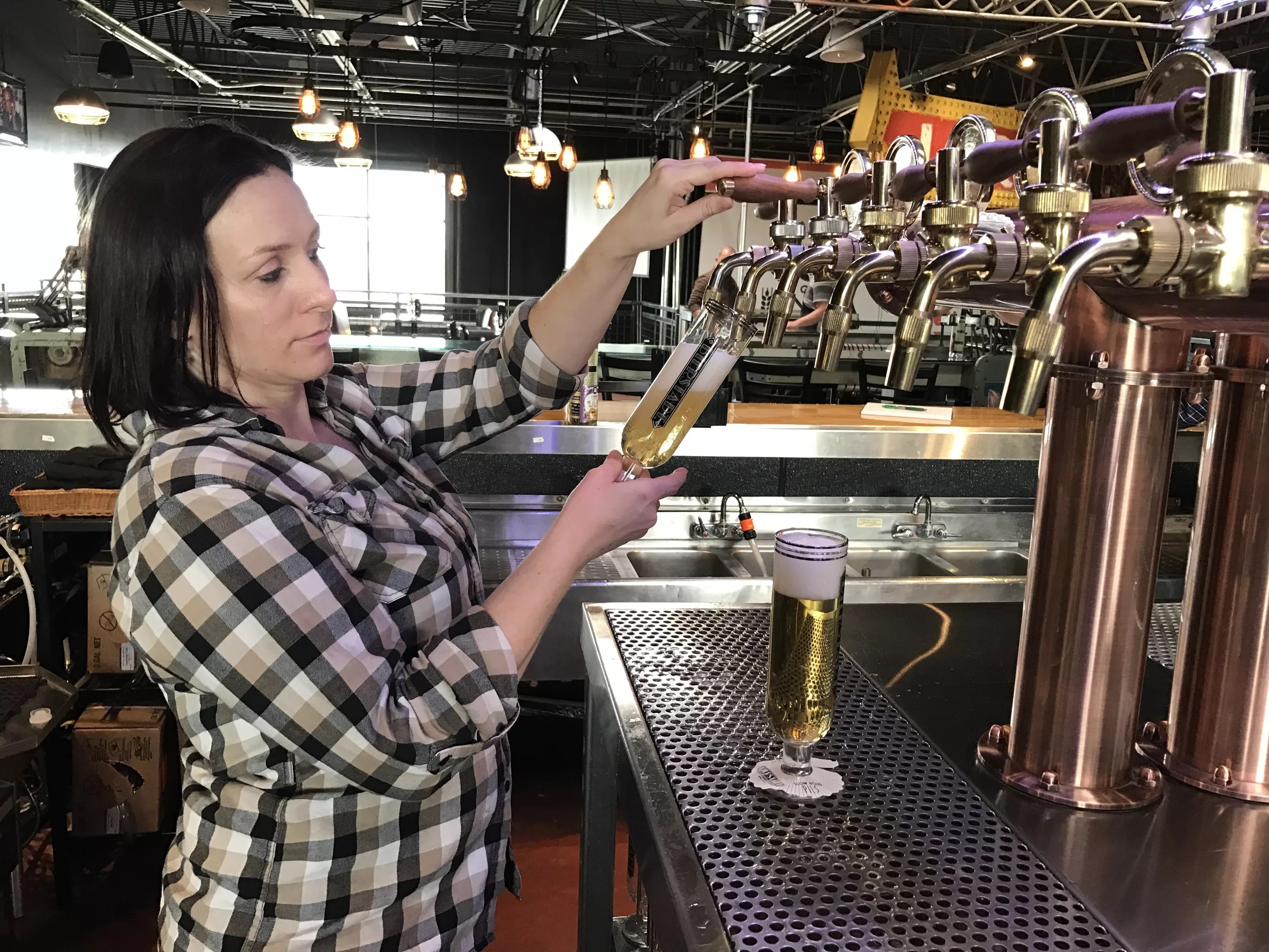 A bartender slowly pours Slow Pour Pils at Bierstadt Lagerhaus.