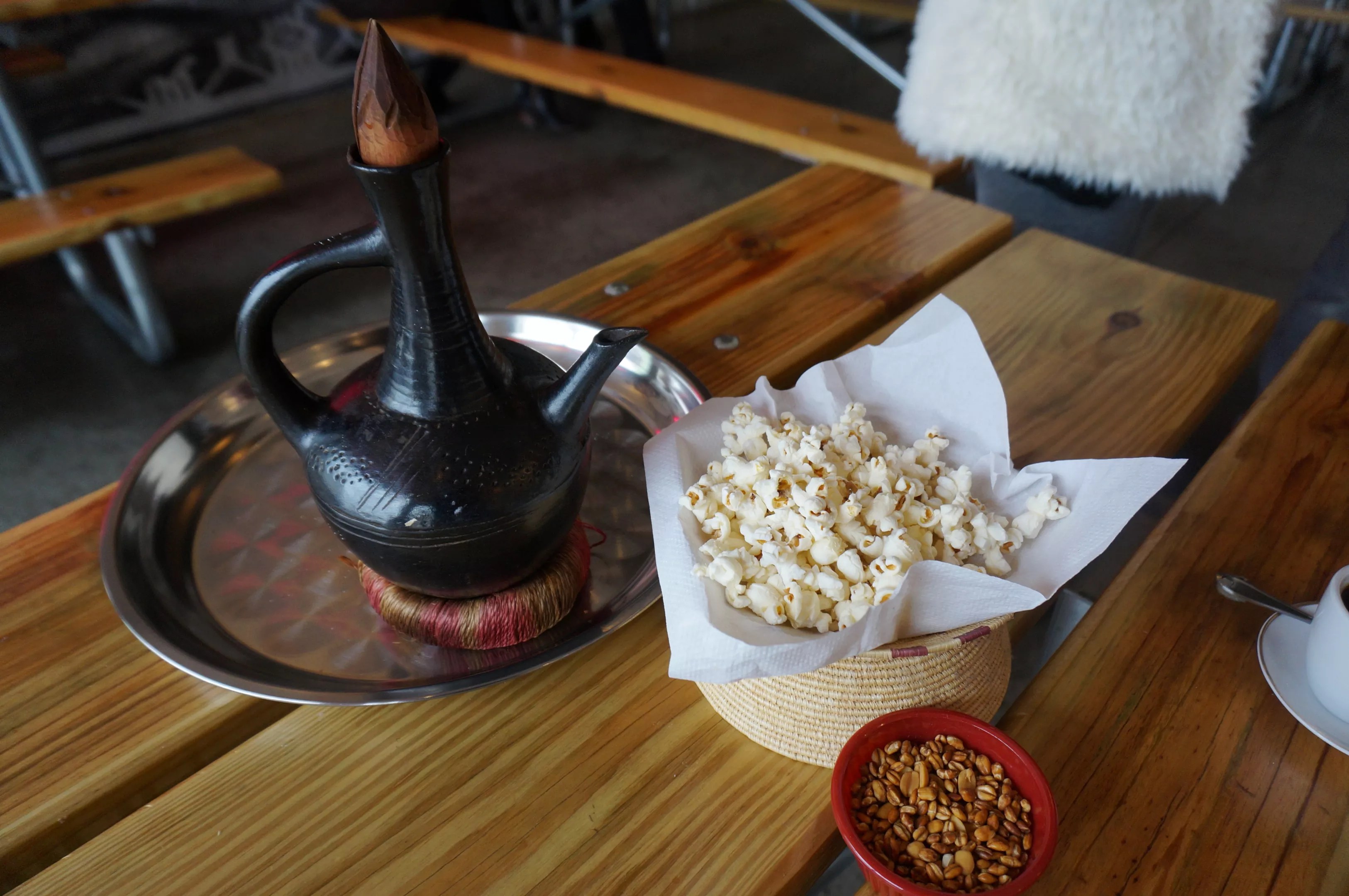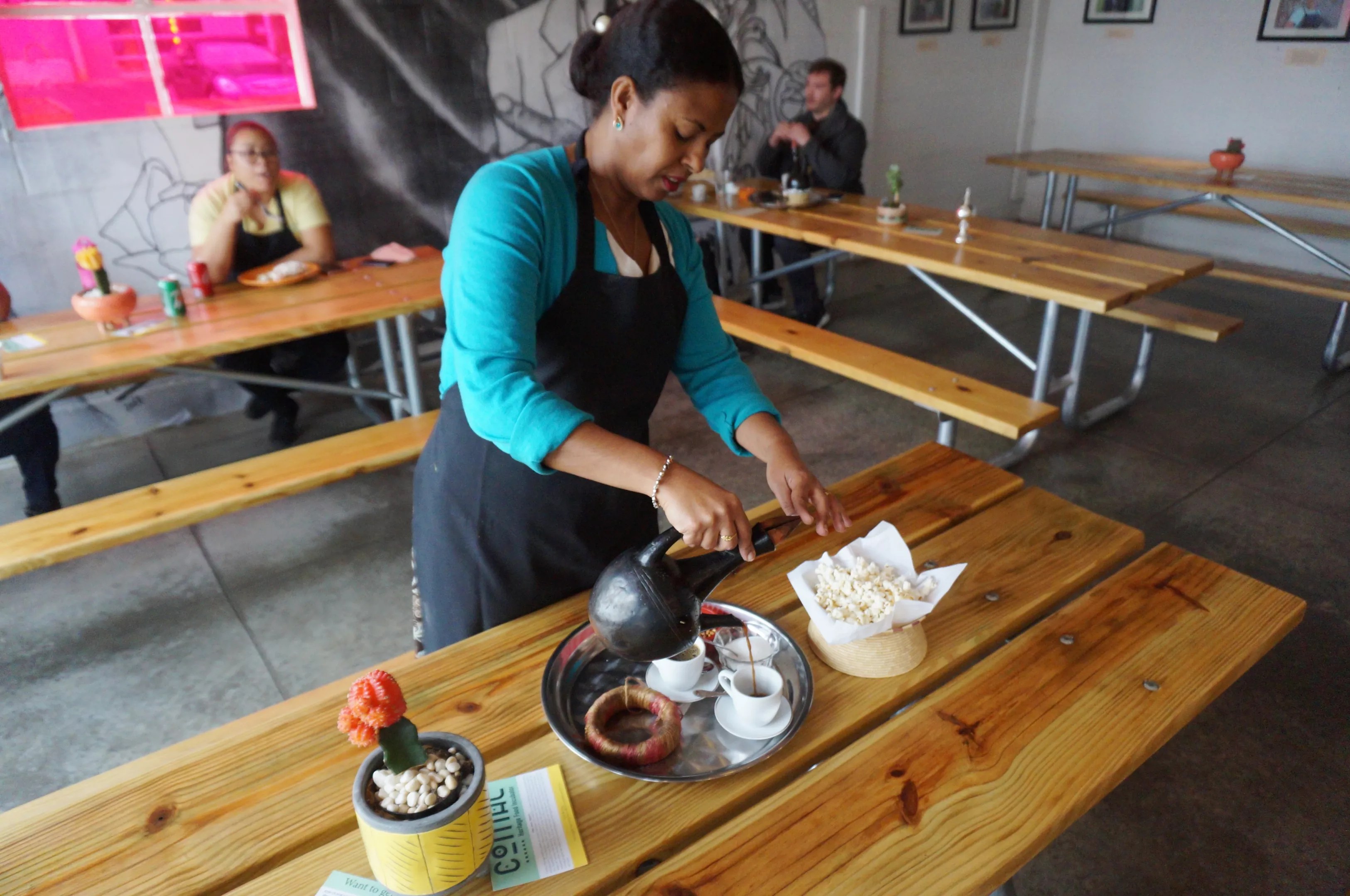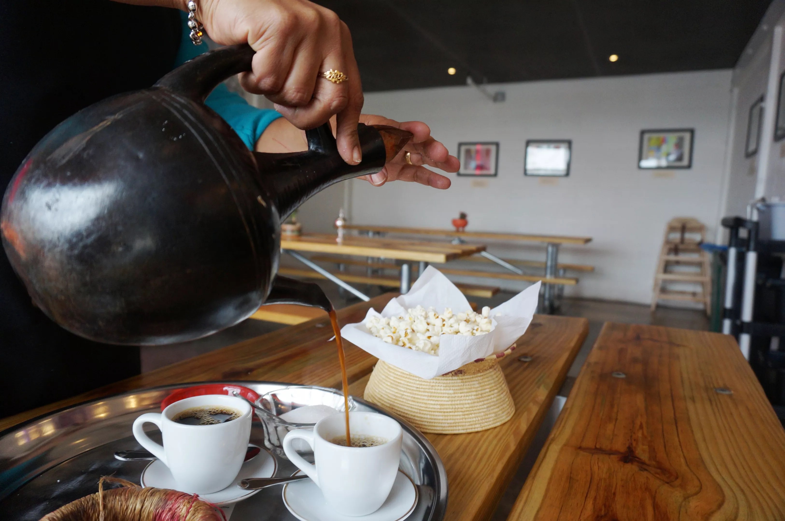 “The coffee goes with the food; it’s part of our culture,” she says, explaining that food and coffee together are a celebration of family and community. Important matters are discussed over the ceremony, which traditionally involves three rounds – called abol, tona and bereka – of adding hot water to the same grounds, so that the first pot is strongest and the last the weakest. The ceremony shows respect for both the coffee and the guests being served, Gebre notes.