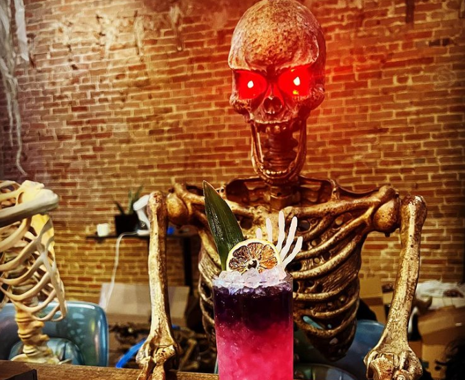 Healy has assembled a team of seasoned industry vets to run the show. “These are all people I’ve known for years,” she notes. A twelve-foot-tall skeleton has already been acquired for the decor, and artist Dan Levinson is updating his Pueblo-themed mural with some spooky additions. “There will be a bunch of giant decorations mixed with vintage stuff sourced from estate sales, antique shops and Facebook marketplace,” Healy adds.