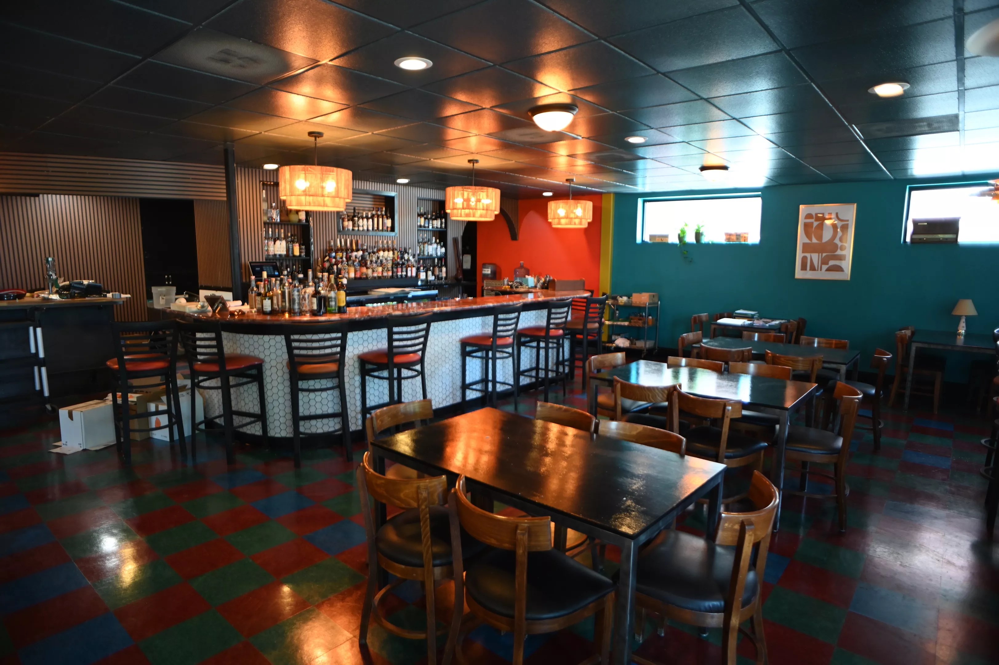“We didn’t want to go with the formulaic cookie-cutter whiskey bar route. We both love this mid-century modern vibe, so we built it off mid-century, but it’s like an eclectic, vintage, mid-century modern kind of look,” Boyer says.