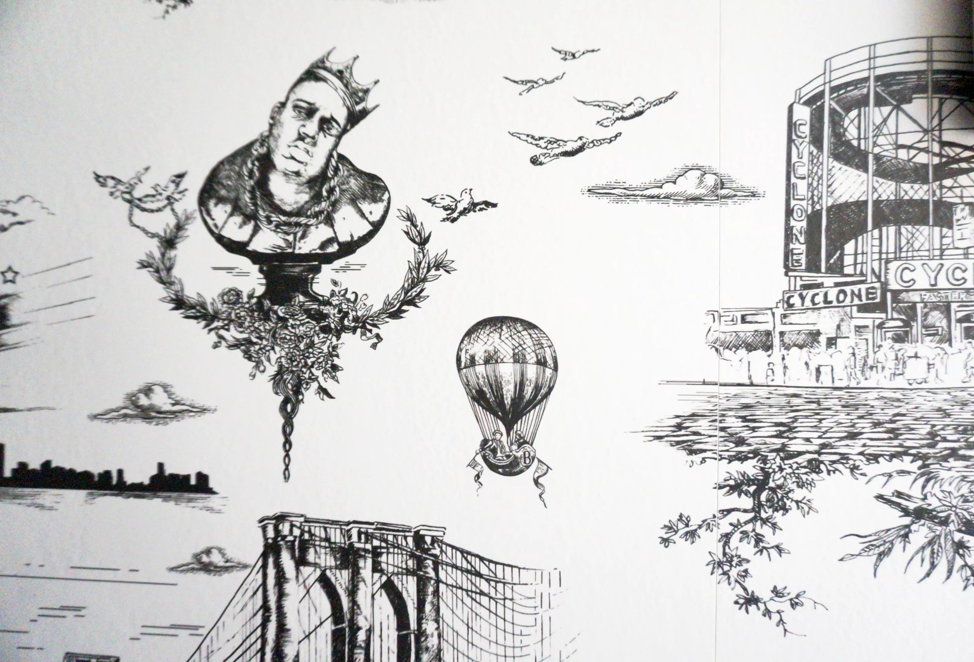 Brooklyn-themed wallpaper designed by Mike Diamond.