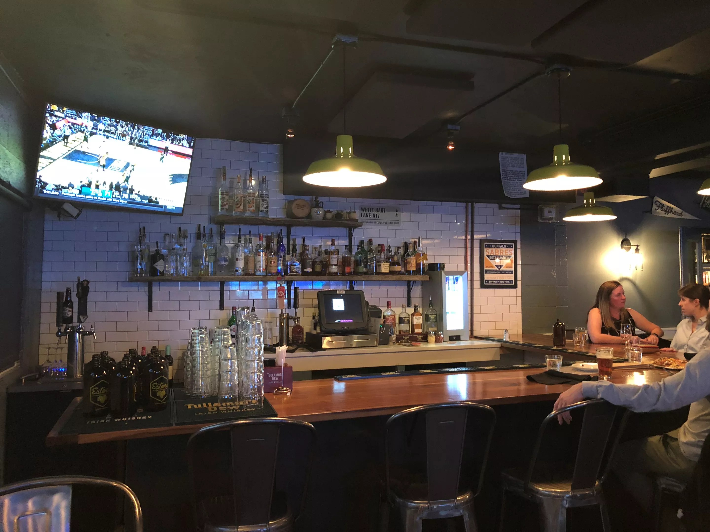 As kids and families filtered out into the cold, wintry night, the place calmed down and the dinner crowd made way for neighbors catching up over beers and watching college basketball. Sports have been a part of the bar since its inception. Esters is a hangout for Iowa Hawkeyes college fans, as well as devotees of the Buffalo Bills and Buffalo Sabres, paying homage to Sullivan’s home town. On game days, the bar, which won our award for Best Sports Bar for Watching Games last year, offers special foods from Buffalo to celebrate.