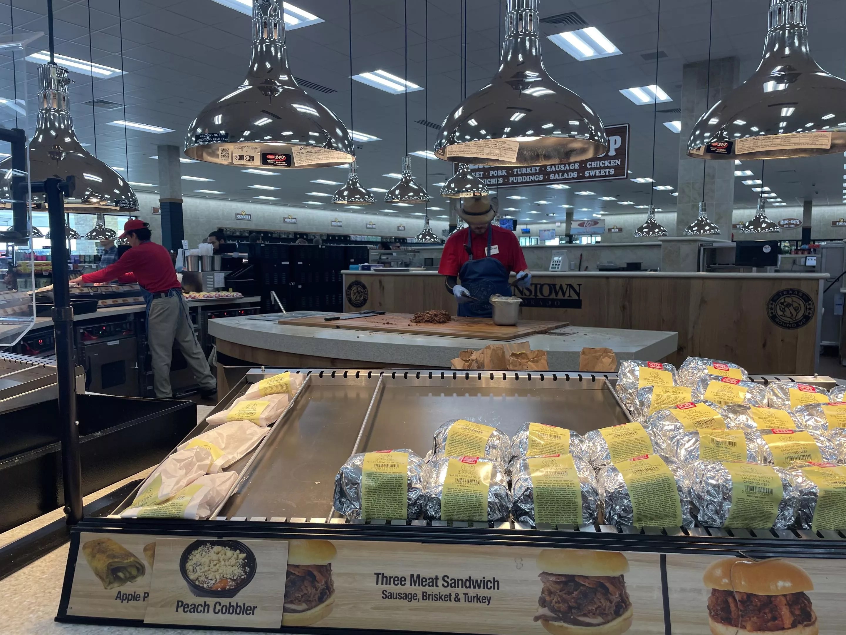 The Texas Round Up station takes center stage in the store; it’s where the barbecue is prepped and packaged. At all hours of the day, someone — usually wearing a cowboy hat — can be found slinging sandwiches there.