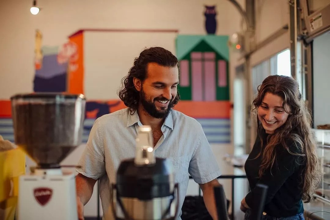 Dustin Croniser and Sarah Mitch inside the new cafe space that they will share.
