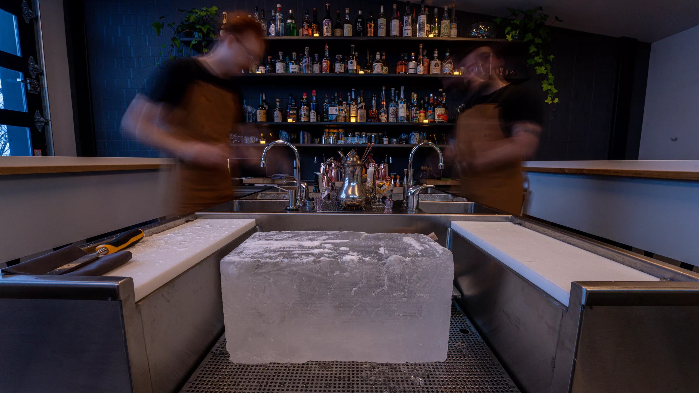 At the back of the dining room, a short corridor leads to the back bar, Ok Yeah. “We’ve never, in our group, done something this drink-forward,” Whitaker notes. A large block of ice is the centerpiece, where bartenders carve cubes and craft libations for patrons without a set menu, led by bar manager Davey Anderson, formerly of Death & Co. Reservations for this space are available for up to six guests, and along with custom drinks, it also serves a selection of hand rolls. “We’re aiming to be up there with our favorite bars in Denver,” he adds.