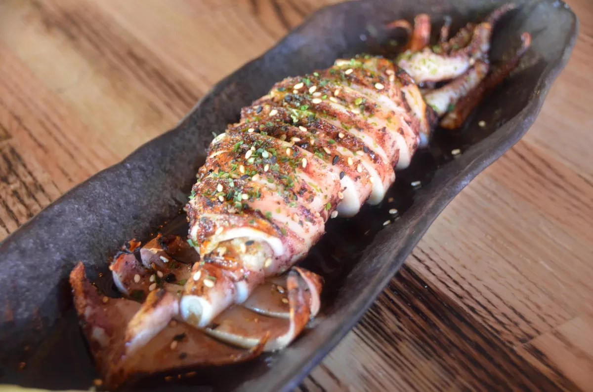 Whole Japanese grilled squid at Mizu Izakaya.