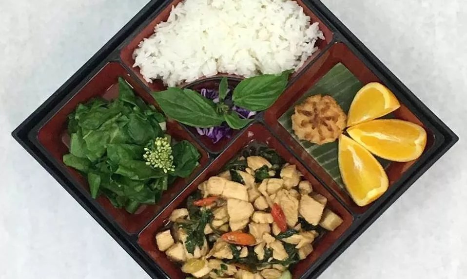 Kelley and Ping’s Thai basil chicken bento box.