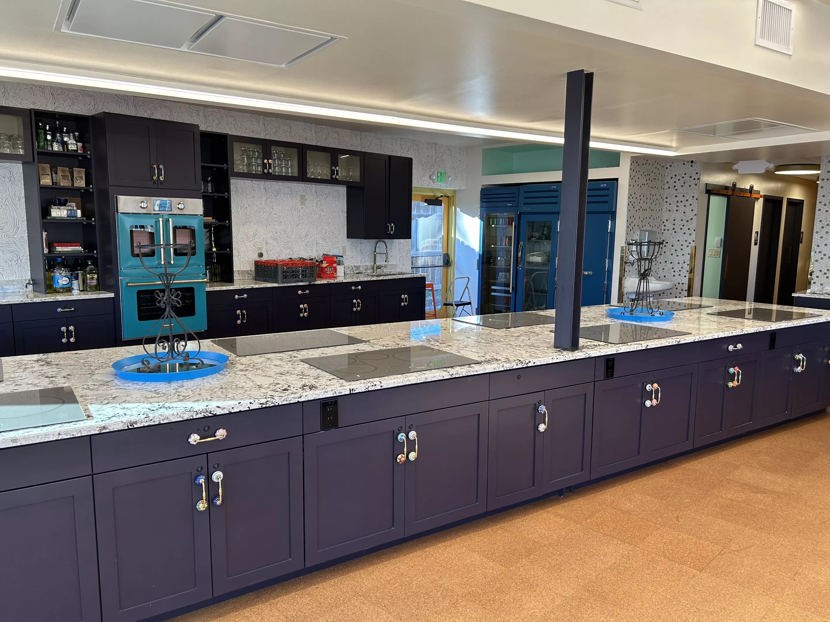 The instructional kitchen features eight induction cooktops and seating for up to 24 guests.