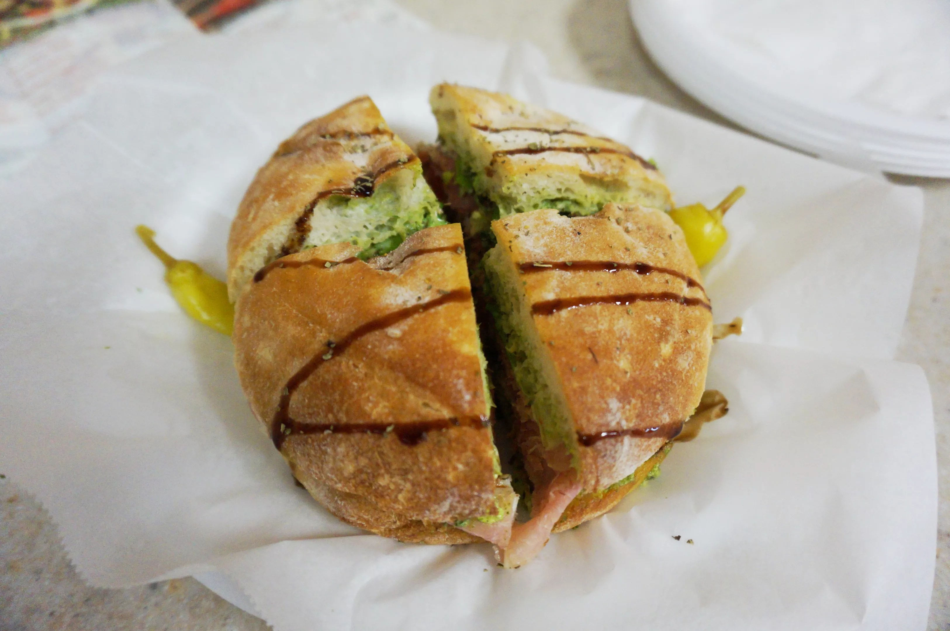 European Market makes prosciutto and pesto sandwiches on locally baked Bulgarian-style bread.