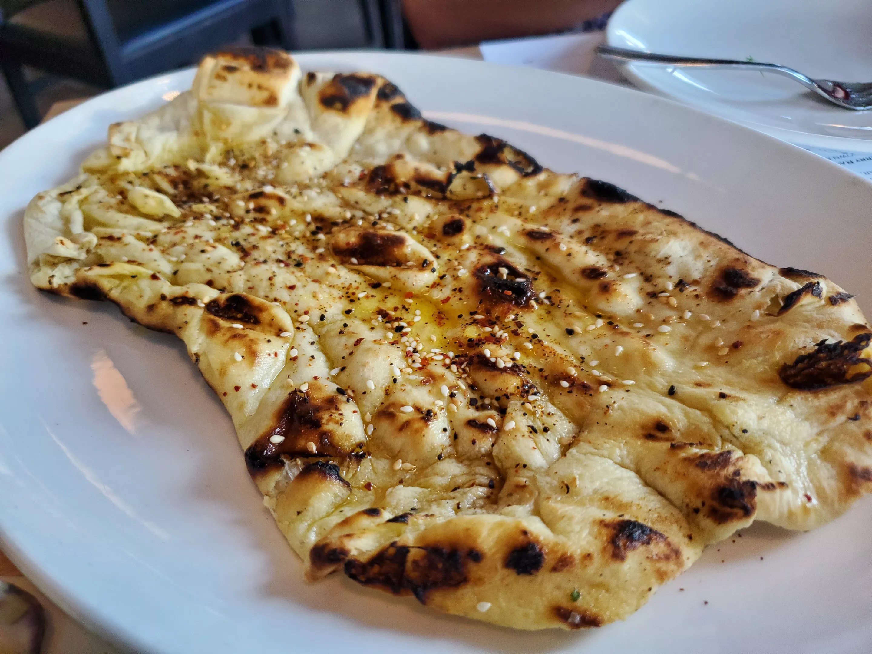 Taboon, a Turkish flatbread, is served with the chicken dish on The Bindery’s summer menu.