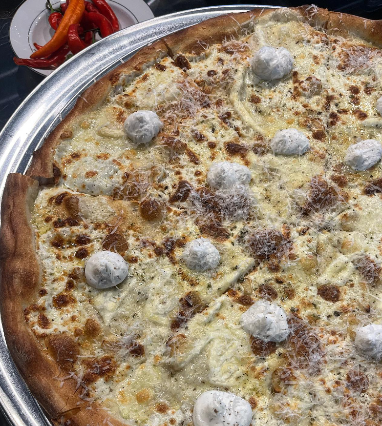 A sausage and ricotta pie from Pizzeria Lui in Lakewood.