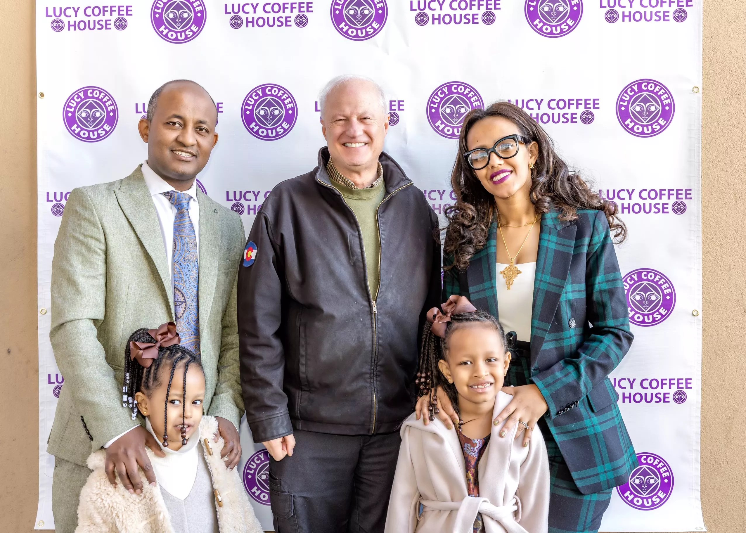 Mickias (Micki) and Mehret (Mercy) Alamirew with two of their daughters and Aurora Mayor Mike Coffman (center).
