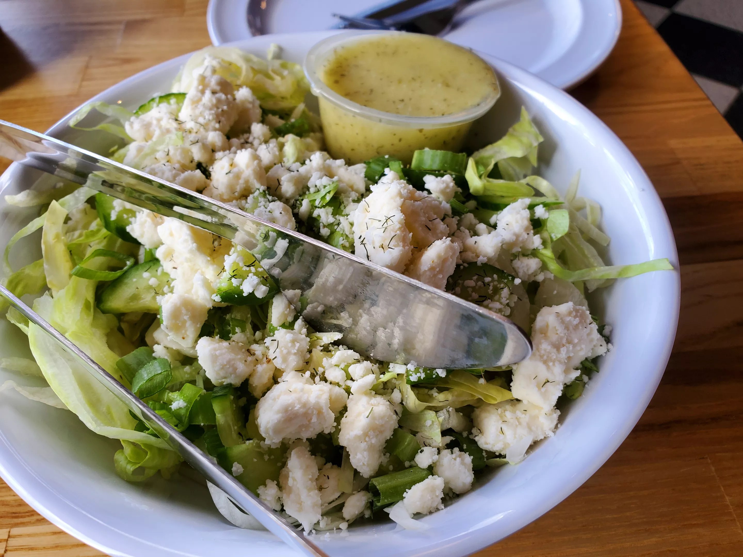 While salad is often an afterthought at pizzerias, here they shine, with plenty of fresh ingredients in options like the ’80s throwback Mandarin chicken and a loaded antipasto salad. Even the simple house salad with shredded iceberg, cucumbers, scallions and feta gets a boost of freshness thanks to a light and zippy lemon dill vinaigrette.