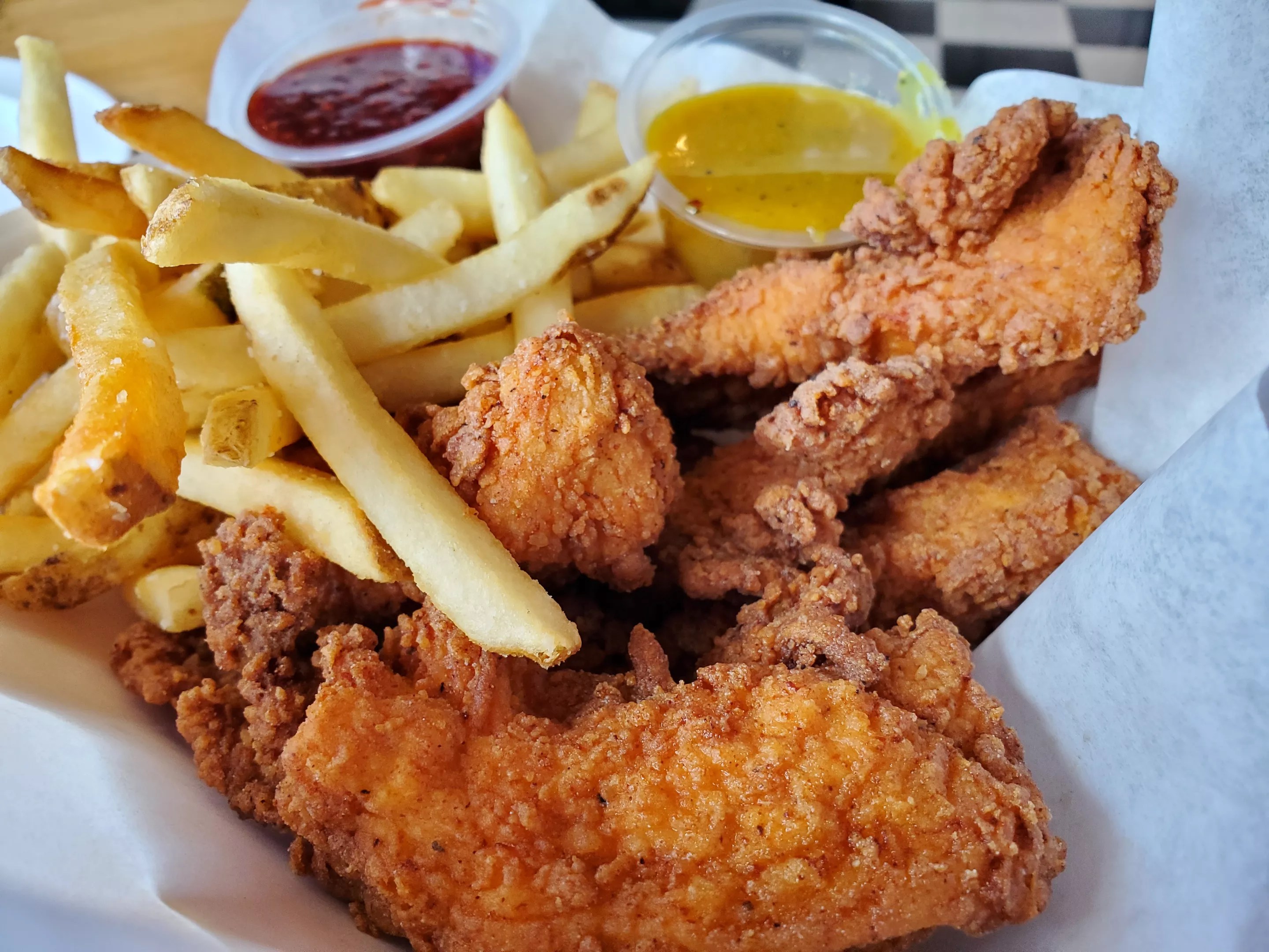 What surprised us: While pizza is the star at Dough Counter — and it’s clear how much time and effort went into nailing down both styles of pies on offer — the non-pizza items are winners, too. Whether you’re gluten-free or not, the hand-battered chicken tenders are a treat, with a nice crisp to the breading while still juicy inside. There are plenty of homemade dips for them, ranging from classics like ranch and a honey mustard made using Monterosso’s recipe, to a raspberry sesame chili that Zach created.